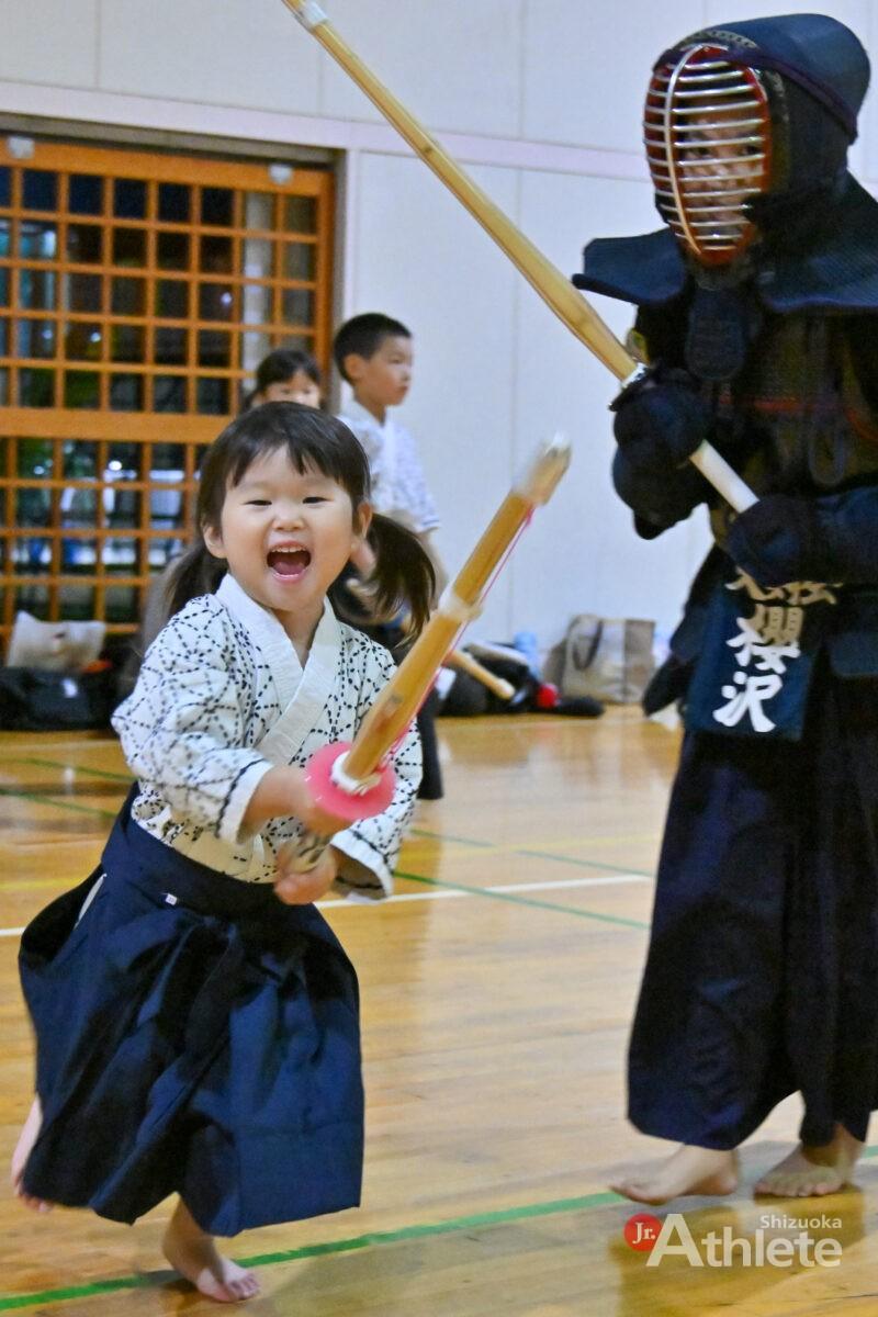 取材したこの日は、小学低学年中心の稽古日。面に向かって「メン!」と力強く打ち込む姿、ちっちゃな剣道着に身を包んだ幼稚園児が元気いっぱいに声を出す姿に、道場全体が活気に満ちていた。打ち込みの音が響くたび、見学席からは思わず拍手が起こるほど。稽古の合間には笑顔もこぼれ、上級生が下級生に親切に教える姿も印象的だった。